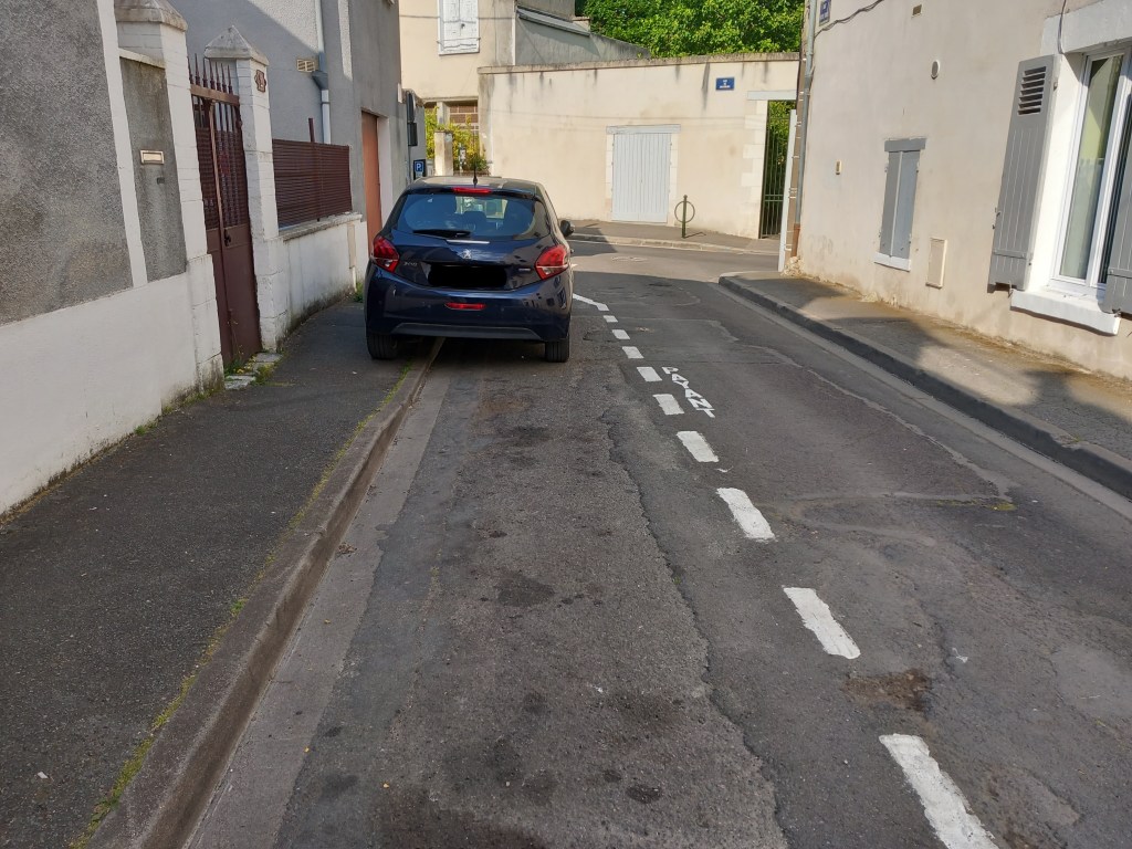 Blague à part, en guise de conclusion, je tiens à préciser que l’imitation joue un rôle ici, car parfois le conducteur s’aligne sur le véhicule garé devant lui. Enfin, le non-respect de la loi est toléré en ce domaine. Si le véhicule stationné déborde côté chaussée, il peut être la cause d’un accident et sanctionné pour cela. S’il bloque la circulation d’un véhicule large, il pourra aussi être inquiété, voire verbalisé pour stationnement gênant. Alors que s’il déborde côté trottoir, c’est toléré et je pense pouvoir affirmer qu’aucune contravention pour stationnement « très gênant »(135€) n’est délivrée dans le cas qui nous intéresse ici. La lecture de l’infographie disponible sur le site service-public.fr est instructive. Se garer sur le trottoir est très gênant, mais que dire lorsque l’emplacement est déjà en partie sur le trottoir ou que seulement deux roues sont sur la bordure ? C’est une mini-infraction, une infractionette… Je préconise donc une tolérance zéro, comme au saut en longueur, si c’est mordu, c’est mordu (je découvre sur lequipe.fr que depuis 2021 la vue du juge prévaut sur l’absence de trace sur la planche d’appel pour refuser la validité d’un saut)! Plus encore, s’il n’y a pas la place dans la rue, parce qu’elle est étroite, alors il n’y a pas de stationnement matérialisé et organisé (c’est trottoir ou parking).