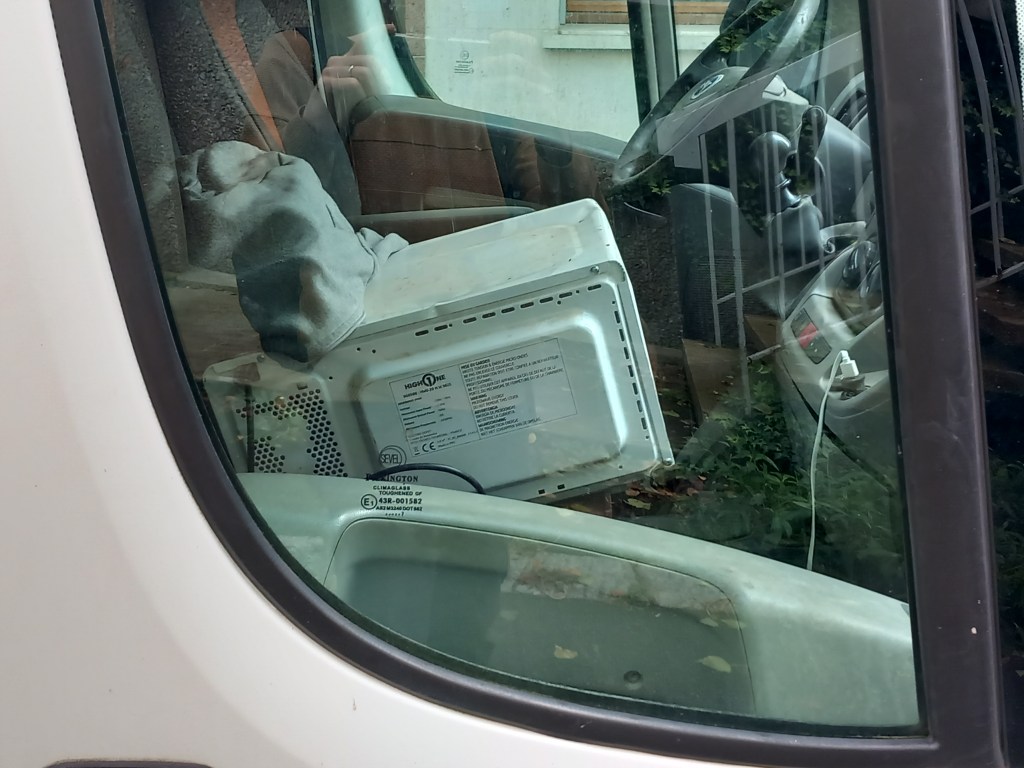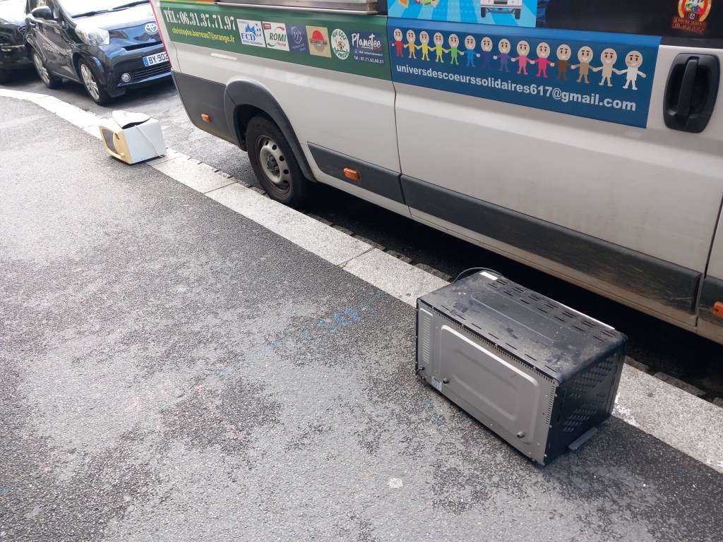 A Rennes, je me balade. Et là je vois, non pas un, mais deux fours micro-onde posés sur le trottoir. Photo direct. Un homme arrive tout gêné et m’explique que c’est temporaire. En plein chantier ou déménagement, il s’en sert de plots pour maintenir l’emplacement libre pour sa camionnette. Encore un génie. Je lui explique que je ne suis pas de la police, je prends l’art, là où il se trouve, à bon marché et en plein air. Quelques mètres plus loin, j’en vois un sur la place du passager (derrière le TNB). Décidément, il y a un truc avec les micro-ondes. Plus tard dans la journée, lors d’une exploration de la ligne B, qui me conduit à La Courrouze, encore un micro-onde en attente d’une tasse à réchauffer, sur le parking. C’est dingue ! Pour moi, ça fait aussi écho à une mission qui commence avec GestesPropres, une mission zéro déchet abandonné. On est loin du compte. Un peu plus loin, au hasard de ma déambulation, je découvre les locaux de La Petite Rennes (un atelier participatif d’auto-réparation de vélo : ça me parle, l’heureux cyclage), puis un hangar bien graffé et dedans un potelet tordu, qui m’attend là, gisant au sol. Une découverte majeure viendra un peu plus tard.