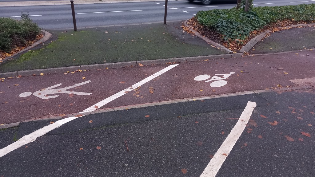 En revanche, je pense que découper l’espace public au couteau, pour donner à chaque mode sa voie de circulation, c’est leur donner un domaine qu’ils vont considérer comme le leur et défendront bec et ongle, en donnant de la voix, et pas pour prononcer que des mots doux, y compris entre modes doux (pas besoin de me souhaiter des crottes de chien sous la basket parce que j’emploie cette formule @tousapied : ça m’arrivera forcément comme durant toute mon existence de marcheur urbain).