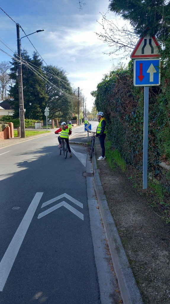 Dans mon groupe, notre mono a omis de préciser que son utilisation était optionnelle (un simple oubli, dans le second groupe l’information a bien été donnée). Nous avons croisé deux cyclistes dans l’autre sens et ils ont opté pour monter sur le trottoir (alors que ce n’est pas de leur côté).