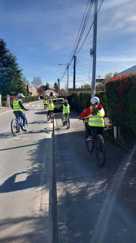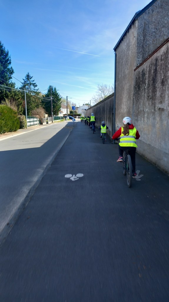 J’ai eu la chance d’accompagner la classe de ma fille pour la dernière journée d’apprentissage du vélo en CM2, celle de la mise en situation en circulation réelle, le bloc 3 du SRAV. Présent en qualité de parent et non en observateur accrédité, mais incapable d’éteindre mon cerveau, me voilà obligé d’en faire un compte-rendu, dans l’espoir qu’il puisse contribuer au bien commun : améliorer les méthodes éducatives pour que nos enfants circulent à vélo en sécurité.